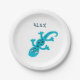 Dieser niedliche, blaue Eidechsengecko ist perfekt für die Geburtstagsfeier eines Kindes. Ein Gecko-Eidechsen-Junge oder ein Mädchen Geburtstagsfeier Teller mit Kindernamen. Die blaue Gecko-Eidechse hat dunkle Flecken. Ändern Sie den Namen mit Ihrem, indem Sie die Teller des Papiers costatieren. Personalisierbare Geburtstagsparty gecko lizard Papier Teller.