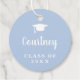 Moderne Abschluss begünstigen Tag mit einem Graduiertencap über dem Namen des Absolventen in einer eleganten, dicken Schrift zusammen mit dem Klassenjahr in Weiß auf einem pastellblauen Hintergrund. Die Rückseite hat Ihre persönliche Danksagung Nachricht. Diese einfachen und minimalen Gunst-Tags sind perfekt für einen Absolventen eines Mädchens und sind eine großartige Möglichkeit, um Ihren Gastgeschenken eine persönliche Touch hinzuzufügen.