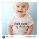 Dieser niedliche Körperanzug für Babyjungen weist ein einfaches blaues Herz mit fett anpassbarem Text auf, der sagt: "Kleiner Typ, große Einstellung." Passen Sie den Text an, um ein lustiges Baby-Duschgeschenk für Familie, Freunde oder Kollegen zu schaffen.