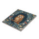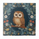 Niedlich Brown Owl Dark Blauer Blumenstrauß Blume Fliese
