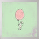 Ein Plakat mit einem skurrilen Hasen, der einen großen rosa Ballon hält, der in der Luft aufschwemmt. Set auf hellgrünem Hintergrund.