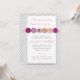 "Niedlich als Knopf" Baby Dusche Einladung Design mit Gray Zickzack Border und rosa Akzente.