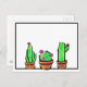 Eine Abbildung von drei niedlichen Kakteen mit rosa Blume in kleinen Terrakottöpfen.