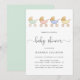 Diese niedliche und minimale geschlechtsneutrale Babydusche lädt mit einer Parade aus pastellfarbenen Minzgrün, blau, rosa, gelb und goldgelben Retro-Babywaschfarben und einer "Babydusche" in einem zeitgenössischen Design zum Verweilen ein. Sie können die Duschdetails ganz einfach personalisieren.