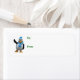 Ein niedlicher Cartoon-Pinguin mit Strumpf-Kappe und Schal ist bereit, Ihre Weihnachtsgeschenke zu kennzeichnen.