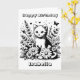 Niedlich Farbe mir Geburtstagskarte für ein kleines Mädchen. Niedliche Katze sitzend in Blume Farbseite. Fügen Sie den Namen des Mädchens in den personalisierenden Bereich ein.