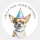 Niedlich Chihuahua in Birthday Hat Runder Aufkleber