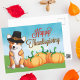 Diese wunderschöne Postkarte des Corgi Erntedanks zeigt einen niedlichen Pembroke Welsh Corgi Hund mit einem lustigen Pilgerhut neben einem Trio von Kürbissen auf einem Herbstfeld. Passen Sie diese Dankeskarte an, indem Sie auf der Rückseite Ihren eigenen Herbstgruß erhalten.