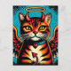 Die künstlerische Intelligenz einer niedlichen Katze in einem Comic-Buchstil, der sowohl ein Engel als auch ein kleiner bösartiger Teufel ist