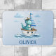 Personalisierter bezaubernder Kapitän Dino Sailboat blaue Badematte! Stellen Sie sich einen charmanten Dinosaurier-Kapitän vor, der an Bord eines charmanten Segelbootes durch die Hohe See fährt. Dieses faszinierende Design verbindet Beständigkeit mit Abenteuer, perfekt zum inspirier fantasievollen Spiels.
