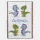 Niedliches Dinosaurier-Paar, das sich gegenübersieht, um sich mit Ihrem eigenen Gruß, Namen, Nachricht usw.