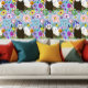 Ein Cioccolate- und Champagner-Frettchen sitzt inmitten farbenfroher Blume in einem blauen Hintergrund.