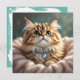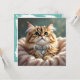 Ein süßer, leerer Notecard, um eine Nachricht an einen Freund zu senden. Die Vorderseite hat ein bezauberndes Bild einer flauschigen Tabbattkatze mit einem Diamantenkragen. Die Rückseite ist leer mit einem hübschen aquamarinen Hintergrund.