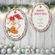 Dieses niedliche Holiday-Ornament ist ideal für Großeltern oder Großeltern, die einem Enkel etwas geben. Die Vorderseite hat ein Bild von einem kleinen braunen Fuchs, der eine Weihnachtsmannmütze und einen roten Bogen trägt und einen gestreiften Bonbons trägt. Unter dem Bild befindet sich der spezielle Name Ihres Kindes in grün. Das Bild ist gerahmt mit einem hübschen, roten, grünen und weißen, kantigen Streifen. Auf der Rückseite des Ornaments befindet sich der gleiche gestreifte Rahmen, und es gibt mehr Textfelder, die Sie anpassen können.