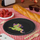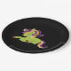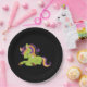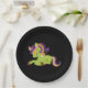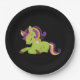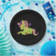 Papier Teller mit einem Bild eines Frankensteins Einhorn. Lila und grüne Farben. Niedlich.