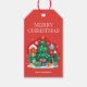 Schaffen Sie Gutes und Geschenketiketten, um Ihre Weihnachtsgeschenke, hausgemachte Waren, Kekse, Süßigkeiten, Leckereien, Gastgeschenke und mehr mit einem lustigen Weihnachtsgeschenk-Szene, das Wort Frohe Weihnachten und Ihren Namen in schicken Schriften zu kennzeichnen.