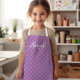 Niedliche Schürze mit einem zweifarbigen Muster blasser Lavendelpolka auf einem dunkleren Lavendelhintergrund. Personalisieren Sie es mit dem Namen Ihres Kindes in einem lustigen Schriftart.