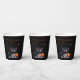 Niedliche Funny Black Kitten Halloween Papier Cups. Ein lustiges und lustiges Trick-oder-Leckerei-Trivet mit einem mit Augen, niedlichen, aber beängstigenden Kätzchen, das ein schlichtes Geisterkostüm trägt! Das unheimliche Kätzchen und die skurrile Ausstattung verleihen dem Kätzchen eine Touch Halloween-Charme. Füge deinen eigenen Text hinzu oder verwende "Happy Halloween".