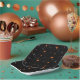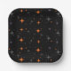 Niedliche Funny Black Kitten Halloween Paper Teller. Lustige Halloween-Teller mit orangefarbenen, lila und schwarzen Retrostern, passend zu unserem "Niedlichen Schwarz-Kätzchen-Halloween"-Party.