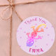 Dieser Aufkleber kommt mit niedlicher, kleiner Regenbogeneidechse auf einem rosa Hintergrund, Text Dankeschön und einem Kindernamen. Es ist perfekt für Kinderfeiern. Sie können den Aufkleber personalisieren, indem Sie den Namen ändern und auch den Schriftart, die Schriftgröße und die Textfarbe ändern.