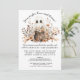 Diese Halloween-Einladung strahlt spielerischen Charme mit einem Hauch von spukhafter Eleganz aus. Im Herzen liegt ein süßer Geist - schwarz-mit Augen und sanft lächelnd - der einen winzigen Kürbis knistert. Die Umgebung ist ein üppiger Kranz von Herbstfloralen und Blättern in warmen Tönen von Orange, Creme und Braun, die ein Gleichgewicht zwischen Schön und Eleganz. . . . Das Layout verwendet eine Mischung aus kursiven und serf Schriftart, um visuellen Rhythmus und Persönlichkeit zu schaffen. Im oberen Bereich befindet sich ein whimsical Header, während der Körper der Einladung mit stilvoller Typografie fließt, die auf Sass und Feiern hindeutet. Details wie die Kostümanforderung und die UAWG-Anweisungen werden mit frechen Flair geliefert, was den Geist des Party verstärkt. . . Insgesamt ist es eine reizvolle Mischung aus saisonaler Schönheit und Halloween-Unfug - perfekt für Gäste, die sowohl Frohsinn als auch Fantasie schätzen.