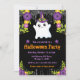 Niedliches Ghost Floral Halloween-Design mit schwarzem Polka-Dot-Hintergrund und schwarzem Tropfen-Glitzer