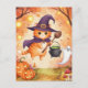 Niedliche Ginger Hexenkatze Halloween Postkarte für Postüberquerung