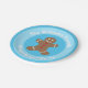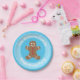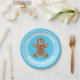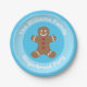 Adorable blaue Teller mit einem niedlichen Gingerbrot-Mann mit weißen Eisquiggles und roten Knöpfen. Personalisieren Sie diese mit weißem Schriftzeichen für ein Kinderweihkochgeschenk-Party oder Lebkuchen-Haus dekorieren Veranstaltung!