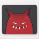 Böses Monstermousepad mit einer Vektorgrafik eines lustigen bösen Monsters mit scharfen Zähnen und Haaren, die aus den Ohren grinsen, in rot und grau. Dieses böse Monstermousepad wird jemanden ansprechen, der böse Charaktere, Cartoon und gotischen Stil mag.