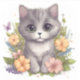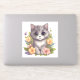 Niedlich Grau Kitten mit Frühlingsblumen Aufkleber