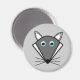 Dieser Magnet ist mit einem kawaii-artigen Cartoon eines niedlichen, grauen Halloween-Wolfs mit spitzen Ohren, hellblauen Augen und schwarzer Nase umgeben von Whiskern ausgestattet. Dieser niedliche Wolf ist perfekt für Halloween oder für Tierfreunde.