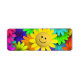 Eine hübsche und niedliche Blume mit Happy-Gesicht, die sich auf einem Bett mit hellen neonfarbenen Blume ruht. Farbenfroh und fröhlich.