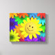 Eine hübsche und niedliche Blume mit Happy-Gesicht, die sich auf einem Bett mit hellen neonfarbenen Blume ruht. Farbenfroh und fröhlich.