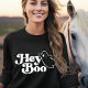 Un joli choix de chemise à manches longues pour Halloween, ce design présente un graphisme fantôme avec typographie blanche Hey Boo en lettrage rétro élégant sur un tshirt noir. D'autres couleurs et styles de chemise sont également disponibles.