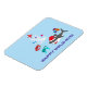 Magnet mit niedlichen Ozean Weihnachtsdesign. Das Design besteht aus einem niedlichen Hai, der eine Weihnachtsmannmütze trägt und Weihnachtsgeschenke trägt, niedliche grüne Meeresschildkröte und niedliche rote Krabbe. Die Einrichtung wird durch eine kleine, weiße Koralle ergänzt, die als Weihnachtsbaum angelegt ist und mit blauen, rosa und lila Muscheln und rotem Seestern geschmückt ist. Im Text steht "Gute Ferien!". Das Design ist anpassbar und Sie können den Text personalisieren.