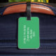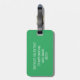 Niedliches Kawaii Gesicht, Gepäckanhänger. Enthält die Registerkarte "grüne Farbblöcke" für Namen auf der Vorderseite und Vorlagenzeilen für Namen und Adresse auf der Rückseite mit der Koordination des grünen Hintergrunds.