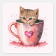 Niedlich Kitten in einem Teacup mit Herz Quadratischer Aufkleber