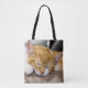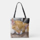 Niedliches orangefarbenes und weißes Kätzchen auf dem Sofa.