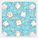 Aufkleber mit niedlichem Katzenmuster, Set auf blauem Hintergrund und dekoriert mit Regenbogen, Pfotenabzügen und vielem mehr.