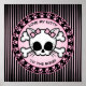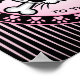 Niedlicher Kätzchen und Kreuzknochen Set auf einem rosa Hintergrund mit Pfotendrucken.