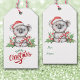 Das niedliche Bild dieses Weihnachtsgeschenktafels ist ein bezaubernder kleiner Koala-Bär, der einen roten Hut des Weihnachtsmanns trägt und einen rot-weiß gestreiften Bonbons trägt. Im stilisierten Text unten auf der Vorderseite steht "Frohe Weihnachten" in grün und rot. Auf der Rückseite des Tags befindet sich das gleiche Bärenbild, mit dem Text in Grün. Dieses Etikett passt zum Confetti Heart Koala Bären Weihnachtsverpackungspapier in unserem Geschäft.