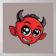 Ein niedliches, kartoonisches Gesicht mit übergroßen Augen, spitzen Ohren und kleinen Hörnern. Sein spielerisches Grinsen verleiht dem schlichten grauen Hintergrund einen schelhaften Charme. Tags: Teufel, niedlich, Dämon, Böse, Halloween, Monster, Hörner, Horror, süß, devilisch, teuflisch, wertvoll, liebend, hacken, hölle, grin