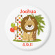 EIN ZU SEIN, IST SPASS ZU BRINGEN! Ein niedlicher, glücklicher Löwe mit einem gepunkteten Polka-Party-Hut, Ballons, Dschungelpalmen und großen Polka-Punkten Nummer 1. Personalisieren Sie es mit Ihrer eigenen Nachricht! PinkInkArt Original!