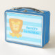 Niedlich orangefarbener Cartoon Löwe mit leuchtenden Streifen für Hintergrund. Für alle, die Lieben Löwen oder geboren unter dem Horoskop Leo. Eine köstliche Lunchbox für junge Jungen, die zur Schule kommen!