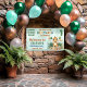 So aufregend! Wo ist das letzte Jahr hingegangen? Es ist vorbeigeflogen, oder? Zeit, um Ihr Kleines im prähistorischen Stil zu feiern mit diesem niedlichen "Chomp, Stomp, Rawr!" "Unser Niedlicher Dinosaurier dreht 1" Junge's 1. Geburtstag Party Design. Die perfekt abgestimmte Farbe in den Naturtönen dunkelgrün, dunkelblau, Rost, Sand beige und aquamarin blau blassgedämpft, ist die perfekte Bühne für Ihre prähistorisch-thematische Feier. Der niedliche kleine Dinosaurier hat ein großes, altes Grinsen auf seinem Gesicht, wenn er ein Party mit Hut, Kerzen und Geschenke und Ballons im Dschungelgewirr spielt. Die Buchstaben "Dinosaurier" und das Alter "1" werden in einem speziellen Dinosaurier-Thema gemacht. Alles wird von einem blassfarbenen Aquarelllicht mit aquamarin blauem Aquarellhintergrund unterworfen. Die Rückseite weist ein Dinosaurier-Fußabdruck-Muster auf dem gleichen Aquarell-Hintergrund auf. Dieses einzigartige Design wird Ihre Gäste und Ihren niedlichen kleinen Dinosaurier beeindrucken!