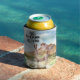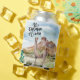 Niedlicher Lama mit einer rosa Blume auf den Ohren in der Wüste mit Kakteen, einem Berg und Gras herum. Ein blauer Aquarellenhimmel liegt über dem Lama und es gibt die lustige Beschreibung "No Drama Llama"