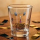 Ein lustiger meerkat Wieglifter auf einem Schuss Glas. Verwenden Sie "Personalisieren Sie diese Vorlage", um den Text "STRONG STUFF" zu optimieren und ein einzigartiges, individuelles Geschenk zu erstellen. Ein Accessoire für jemanden, der einen Schuss oder eine Kleinigkeit von etwas Potentem genießt, mit einem niedlichen Cartoon einer mageren Merkat in großen Shorts, lächelnd, während er mühelos einen großen Grill mit einem Finger hebt. Für Fans von Schnaps, Gewichtsheben, Mücken und/oder Ausarbeiten.