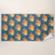 Ein Strandtuch, illustriert mit einem sich wiederholenden Muster einer Aquarellbild eines orangefarbenen Kürbis, der mit farbenfrohen Herbstlauben und Krawatten geschmückt ist.