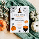 Niedliches Halloween-Illustrationen neutrales Baby-Duschbad, perfekte Halloween-Babydusche, niedliche Illustrationen mit Gespenst, Spinnennetz, niedliche Spinnen, kleine Kürbisse, geschnitzte Kürbis, Hexentränke, mit Hut. Alle Illustrationsfarben sind vollständig editierbar, sodass Sie Ihre eigene Farbpalette erstellen können. Ein kleiner Kürbis ist unterwegs!