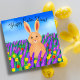 Der Frühling ist auf dieser Osterkarte gefallen! Überraschen Sie Liam mit einem Sonnenbrand! Unter einem hellblauen Himmel erstreckt sich ein blühendes Feld lila und gelber Blumen, an dem sich ein bösartiger Osterhase vorbeizieht. Es ist die perfekte Karte, um sich mit einem herzlichen "Happy Oaster, Liam!" zu personalisieren. Diese Karte garantiert ein Lächeln (und vielleicht eine glückliche Ostereierjagd!) Illustration: Original Fantabuloustef Gemälde